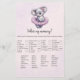 "Vem är min Mamma", babyduschkort med baby ballerina koala är upphetsat att spela en duschmatch i nyfödd bebis! Tränad i en lila tutu med en matchande blomma ovanpå hennes huvud. Mallar på baksidan.