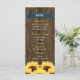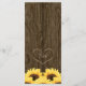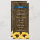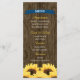 ETT SUNFLOWER-MENYKORT MED LAND CHARM OCH ETT RUSTISKT FOL MED EN TRÄGRAN TRÄGG ELLER BARREL-BLODKONSTRUKTION OCH EN NAGEL-HUVUDSTRIM. EN KOBALT BLUE NAVY-BANNER PÅ FRAMSIDAN OCH EN BÄRBAR HJÄRTBORDSKONSTRUKTION PÅ BAKSIDAN DÄR INITIALERNA AV BLÅS- OCH GRUMSKÅLEN LÄGGS TILL. EN BOUQUET AV GOLDEN GULT SUNFLÖDEN HAR EN VINTAGE OCH HAR EN PAINTERLY LOOK. PERFEKT FÖR EN BRÖLLOP ÅRSDAG ELLER FÖRLOVNINGSFEST MED ETT BARN ELLER ETT JORDBRUKSTEMA. DESIGN © CHRISSY H. STUDIOS, LLC. ALLA HÖGER RESERVERADE.