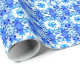 Omslagning papper i batikeffekt, tillsatt mönster, med abstrakt blommigt inslag, i nyanser av denim, kobolt och himlar