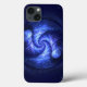 Har en roterande, blå, fyrkantig bild av en ledad metallmekanism.