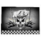 Ge din gåva till det kulinariskt skolar studenten, i denna lämpligt themed kockskallegåva hänger lös. Denna produkt för anpassadekockskallen, särdrag en kall kockskalle som ha på sig hans kockhatt, med två kor korsade kockförskärare som är främre av en djärv svart, flammar. Svartvita rutiga paneler fodrar varje sida. Bakgrunden kan ändras till en färg av ditt primat. Denna produkt är underbar för den utöva kocken, sous kock, fodrar kocken, hemkocken eller någon kulinarisk professionell med en våldsam passion för att laga mat. Besöka www.zazzle.com/thechefshoppe och www.zazzle.com/whiskybusiness, för att se mer kyla kulinarisk themed döskallar som är designad vid sdesiata, på tons av produkter som erbjuds av Zazzle.