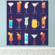 Plattdrinkar i glas, martini, mojito, kosmopolitan och smoothie Alkoholtropiska drycker för pub-menyn Cocktails set Pro