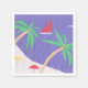 Dessa cocktailservetter är designade med en öscen i handflatan träd, paraplyer och ett blått hav med en röd segelbåt.