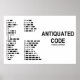 Visa Internationell Morse Code fläkt sida med den här poster som innehåller punkter och streck (dans och dans) i IMC tillsammans med följande ordalydelse som får andra att göra en dubbla av vad de tittar på: "Antiquated Code".
