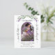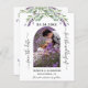 Ett modernt bröllop spara datum-fotokort. Dekoreras med laverings blommigtar, blommor och eukalyptus greenery. Anpassa och lägg till foto, information om bröllop och din egen fyrkantiga kod på webbplatsen för bröllop.