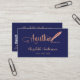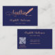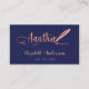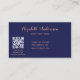 Ett affärskort i elegant på en marin blå bakgrund och en ro guld luddpenna. Elegant-handskript i stil. Anpassa och lägg till ditt namn, titel, kontaktinformation och din egen QR-kod till webbplatsen adress.