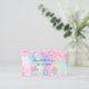 En rosa, lila, mynta gröntens holografisk bakgrund. Dekoreras med damm och muffinsar från glitter. Anpassa och lägg till namn och text framtill. Tillbaka: Mallar för Ditt namn, titel, mobilt nummer, e-post och webbplats adress, ditt eget QR-nummer till webbplatsen eller social-mediekontot.