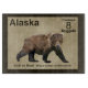 En annan i podiet frimärke för en hypotetisk oberoende-nation i Alaska. Innehåller en digital målning av ett Kodiak Bear på en neutralt eller gammal papper bakgrund. Texten "Alaska", "Postage 8 Nuggets" och "Kodiak Bear Ursus arctos middendorffi" finns också med. Du kan välja en bakgrund färg eller lämna den genomskinlig. Kodiakbjörnen (Ursus arctos middendorffi), en underart till brunbjörnen eller grizzly, är världens största björn. En fullt som odlas kan vara över 10 meter lång när han står upprätt på sin ben och väger över 1500 pund - en syn som verkligen kan skönjas. En björn i Bismarck, North Dakota zoo, beräknades ha vägt så mycket som 2 400 pund. björnarna bor på öarna i Alaska's Kodiak Archipelago. I dag finns det ungefär 3 500 kodiakbjörnar, och deras antal ökar på grund av den i allmänhet utmärkta villkor i deras livsmiljö, inklusive tillräckligt med sprit. De kallas "takuka-aq" i Alutiiq, det språk som talas av folkets invånare i området. Man tror att björnarna har varit isolerade där sedan slutet av den sista isåldern för över 12 000 år sedan. Även om de är det största landlevande köttätaren omfattar deras kost stora mängder gräs, andra växter och bär. I dag finns det ungefär 3 500 kodiakbjörnar, och deras antal ökar på grund av den i allmänhet utmärkta villkor i deras livsmiljö, inklusive tillräckligt med fisk att äta. På grund av mängden livsmedelsresurser har Kodiak mindre hemmaplan än andra brunbjörnar och behöver inte försvara områden. Alutiq-folket jagade björnar för mat, kläder och verktyg. Det krävdes pilar, spjut och underbart mod för jaktutrustning. Björnhuvudena lämnades vanligtvis i fält som ett tecken på respekt för björnarnas anda.