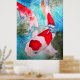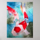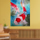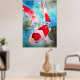 Med en design från en originalfärgad målarteckning av den australiske konstnären Sacha Grossel av två Kohaku-röda och vita koreanska prydnadsfiskar som simmar i en coola, akamaringdamm med vatten-effekter. Denna färgstarka och levande konst poster inspireras av japansk och asiatisk konst och är till för fisk eller Koi älskare överallt.