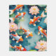 En sömlös vattenfärg i mönster med elegant koi-fisk som simmar mellan blommande lotus blommor i en flytande damm.