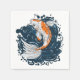 En levande koifisk med orange och vita skalor simmor som roar sig mitt i snurrande mörk blått vatten. Den dynamiska rörelsen i vatten skapar en energisk bakgrund som belyser fiskens elegans.