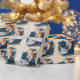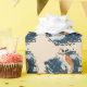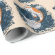 En levande koifisk med orange och vita skalor simmor som roar sig mitt i snurrande mörk blått vatten. Den dynamiska rörelsen i vatten skapar en energisk bakgrund som belyser fiskens elegans.