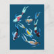 Akvarell färgrik koi fisk vacker fantasifull design i blått. Original konstnärlig målning design.