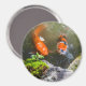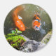 Färgfull karpfisk eller koifisk i en grunda trädgårdsdamm.