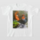 Färgfull karpfisk eller koifisk i en grunda trädgårdsdamm.