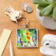 Koifisk, färglös vattenfärgskonst fyrkantig silverfärgad nyckelring