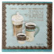 Ljuv kaffekonst belägger med tegel endera för en trivet, att hänga för vägg eller andra användor. Original- konst av Audrey Jeanne Roberts har en härlig choklad - bruntet att virvla runt mönster i vattenfärg och en aquablått tvättar bakgrund med en trio av kaffe kopparfullt av mörkt rikt kaffe. Ett I en latte med piskad kräm, en espresso och en högväxt mugg av java. och chokladöknar på sidan. Chokladgodisen, tryfflar och hallon tillfogar ett stänk av färg och designen. I texten är det inspirera citationstecknet, "kaffe gör dig briljant. Överheten av en man varar besvärad proportioneras direkt till antalet av kaffe som han dricker. Herr James Mackintosh, skotsk jurist, historiker och filosof",