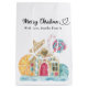 Vattenfärgat gingerbrödhus. Jul party. Dekorera brödhuset med julklappar, candy cane, orange och kakor.