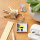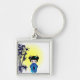 Kokeshi docka och bambu fyrkantig silverfärgad nyckelring