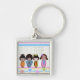 kokeshi-dockor fyrkantig silverfärgad nyckelring