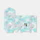 En söt kokeshi doll i en damskij rosa turkos kimono under en rosa cherryblossom träd. Med en turkospinnad bakgrund. Med en anpassningsbar i ett elegant-teckensnitt för flickans födelsedagar.