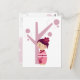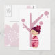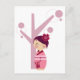 Kokeshi doll med en rosa kimono med uppgifter om körsbärs blommar framför träd. Blommarna av körsbär är ett tecken på bra förmögenhet och är också ett emblem för kärlek, kärlek och vår.