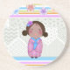 Söt kokeshi doll med sakura mönster på hennes kimono.