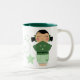 Den Kokeshi dockan som ha på sig en grön kimono med stjärnan, specificerar beklär och drar tillbaka på. Mittet har en stjärnadesign.