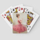 Balettdansös i en het rosa tutu som håller en bukett rosor kort
