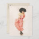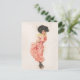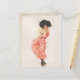 Kokett brunett kvinna i rosa sidenklänning vykort