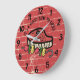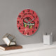 Perfekt köksklocka för grill älskare, en faux brick bakgrund med steak och veggie kebab, personlig med ditt namn eller annan text för att ange kärlek i grillning.