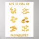 Tillsätt värme, humor och charm i ditt utrymme med detta roliga pasta väggkonsttryck med den uppiggande frasen "Livet är fullt av möjligheter". Designad med en mjuk minimalistisk stil och illustrerade pastashapes, kombinerar detta konstverk matinspirerad konst med positiva vibrationer, vilket gör det perfekt för mysiga och välkomnande interiörer.