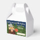 Roligt julkaka eller helgdag för presenting av hemmade bakverk eller bakade varor, maträtter och konfektioner, hund kex och annat, personlig med ditt textval och typsnitt, med en rolig rackon med vinter-hatt och choming på en cookie.
