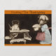 Vintagens foto av en valp i en lång klänning och en "hållare" bakskål. Bredpuppen är en liten vintage i metall som är öppen och har en tekokare överst.