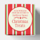 Cute Red and grönt stripe bakning av presentlådan, perfekt för christmas cookie exchange party eller för att sälja dina hemmade produkter på jordbrukarens marknad och till hantverksmässor runt jul. Använda de här lådorna till ge bort matprover från dina jultillagade lockar. Idea för lilla presenter att du ge till andra eller för barnens favörer till familj och vänner. För närvarande står Made med kärlek från Kathleen Turners köks julgranar. Fullständigt anpassade att anpassa sig till ditt eget namn och produktinformation. Designad av Sarah Trett.