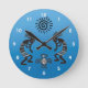 Kokopelli med inhemsk Sol och inhemsk fågelsymbol Rund Klocka