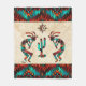 Det här är en unik "en av en typ", sydvästra Kokopelli Fleece Blanket! Den har två sydvästra Kokopelli som spelar Flute och dansar runt en kaktus under Sol på Sandstone-bakgrunden...omringad av sydvästra Gräns i turkos, Orange och svart! Original Art Design by Artist Kerry Miller.