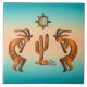 Få ditt hem med den här unika "en av ett slag" två koppar från sydvästra Kokopelli-keramiska plattan! Den har en två sydvästra Kokopelli som spelar Flute och dansar runt en kaktus under Sol på en turkos- och Orange-solnedgång! Det här är en originalkonstform av konstnären Kerry Miller.