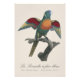 Denna utsökta naturhistoriska illustration, med titeln "La Perruche à face bleue" (Den blåfågade parakiten), är ett verk av den framstående franska botaniska och zoologiska konstnären Jacques Barraband (1767–1809). Skapad för den banbrytande publikationen Histoire Naturelle des Perroquets, visar Barrabands mästerskap i detalj och färg i den intrikata återgivningen av fågelns fjäderdräkt. Illustrationen visar en papegoja – historiskt identifierad på denna plansch som en variant av regnbågslorikiten (Trichoglossus haematodus) – stolt sittande på en väderbiten gren med delvis utbredda vingar, som visar de livfulla, flerskiktade mönstren på dess undersida.