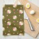 Köks Torn med körsbär paj. Ett vackert kökstillbehör. En mönstrad handduk med en illustration av körsbäret paj med ett kornigt struktur.