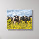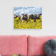 Den här inslagna duken har en rad svarta och vita kor som står bakom ett taggtråd med ljusa gult ogräs i förgrunden och en turbulent blå grått himlar bakom. Det skulle vara en perfekt av färg var man än visningar det.