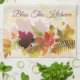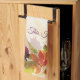 Kökshandduk som visas i benvita färg med ett konsttryck på höst löv hösten. Text av "Bless This Kitchen" ovanför cornucopia. Anpassa det här objektet eller köp som det är. lagrar-bild