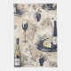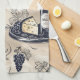 En chic, modern kökshandduk med elegant vin-glas, flaskor av vin, druvor och ostplanterare, som ställs mot neutraltens bakgrund för sofistikerad känsel
