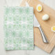 En designerhandduk med vit och mynt grönt blommönster, den vita bakgrunden som kan bytas till vilken färg som helst. Du kan också lägga till ett namn för att anpassa din familj eller som en anpassningsbar.