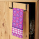 En söt Kitchen Towel eller Tea Towel, i en blandning av "n'match design of hearts and blommor mönster, check gingham and polka dots in shades of magenta, lila and white.