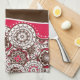 Kökshandduk med stilfullt folk rött, vit, brun geometrisk prydnad.