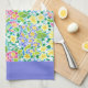 Ett mycket söt Kitchen Towel eller Tea Towel, med mönster av rosa, gult och blå priroser, från en handmålad vattenfärgsdesign av Judy Adamson. Gräns i den här handduken är i Powder Blue, men det finns andra färg.