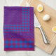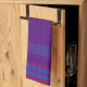 Ett rikligt färgad Kitchen Towel eller Tea Towel, med en blandning av n'match-design av traditionell mönster i skuggor av Lila och feta checkar i Plum och Dazzling Blue.