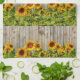 Lysa upp din köksdekor med rustic solros trädgård, med köksomduk med trästaket bakgrund. Denna handduk kommer att se fantastisk ut när den koordineras med lantlig dekor.