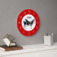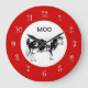 Kläck ur köksväggen i land med en bild av en svart och vit vektorko på klockan ansikte i denna dekorativa väggskur för köket, badrummet eller något rum i ditt hus som du vill lägga till tecken och stil. Färger omfattar rött, svart och vitt.
